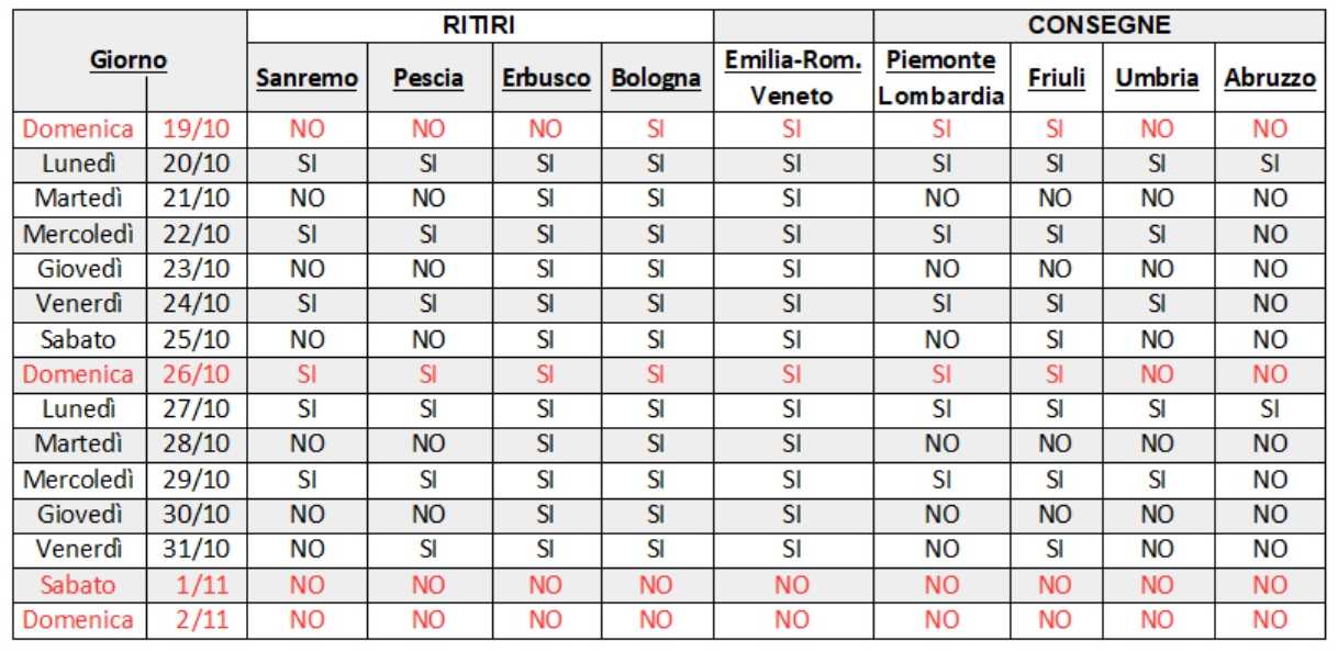 CALENDARIO STRAORDINARIO DELLE PARTENZE DAL 19/10/2025 AL 02/11/2025 (Ultimo Aggiornamento: 30/10/2025)